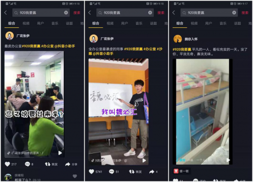 由此可见,流量分化时代下,随着用户增长、人群兴趣多元,用户也从起初年轻人群走向普世性的泛人群。而#920我要赢#抖音挑战赛在不同年龄、不同圈群受众中所引发的广泛关注与热议,除了短视频传播大行其道的必然趋势之外,更重要的,是其内容指向的接地气引发了不同人群的广泛共鸣,在正确的时间,将恰当的内容通过正确的平台和渠道进行传播,实现传播内容增值和人群扩容便指日可待。