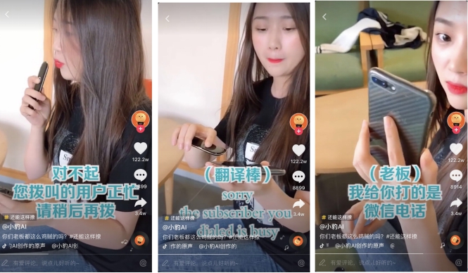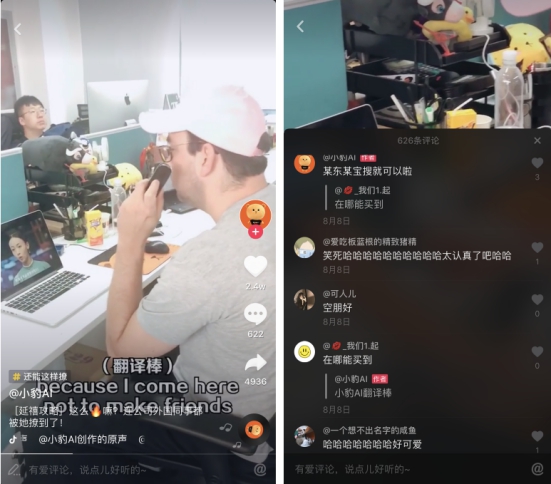 这款网红翻译产品频出佳作,上班族美女巧用小豹AI翻译棒的即时语音翻译功能,企图逃避老板加班电话,结局乌龙又搞笑。视频通过巧妙的洞察、搞笑的方式引发众网友共鸣,上传12小时后单篇播放量破3100万,点赞近150万,小豹AI翻译棒一夜间在抖音随之爆红。“抖友”纷纷留言“确认过眼神老板是个东北人”“道高一尺魔高一丈,老板也用小豹翻译棒”“这种有脑子的广告我认了,种草翻译棒”。