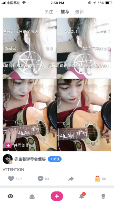 3、互动性。我认为这是和其他平台最大的区别,没有互动和社交,这就变成了工具,而一个短视频工具产品,除了有日活之外,是沉淀不出任何价值的,所以要往社交这块靠,思路是对的。