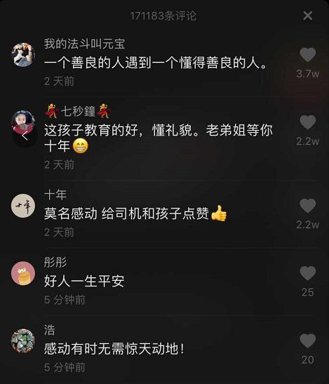 网友们纷纷表示:“莫名感动,给司机和孩子点赞!”“一个善良的人遇到一个懂的善良的人。”