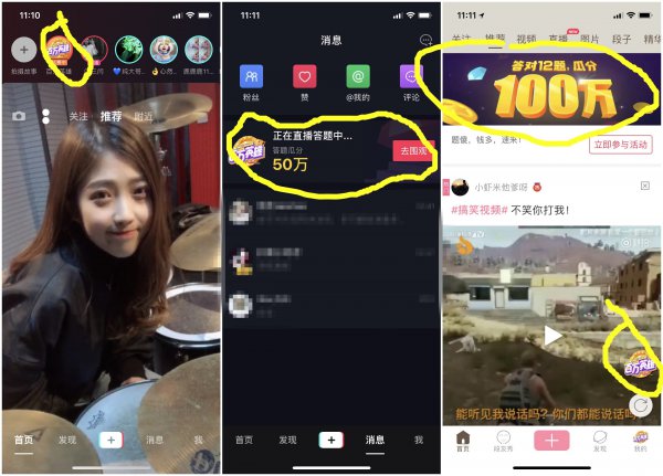 大家平时玩百万英雄都是通过西瓜视频或者今日头条,但是最近抖音短视频、火山小视频和内涵段子这几个App也都上线了百万英雄。而且登陆账号是相互独立的哦,也就是说,大家可以在这几个App里注册账号,然后使用原来的邀请码就可以两个账号各自增加与一个复活码了。