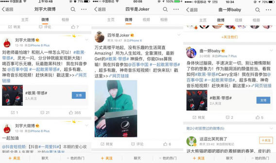延伸至域外的还有抖音短视频和百事可乐的微博、微信,为了将活动效果最大化,两个平台也在自己的社交媒体上纷纷号召粉丝参与。
