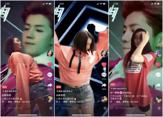 今年7月,鹿晗发布新歌《零界点(On fire)》,抖音作为合作伙伴,发布了两个15秒的鹿晗MV视频。值得一提的事,抖音获得了独家MV贴纸授权,应用“背景分割”技术把MV做成背景贴纸,粉丝可以使用动态背景贴纸拍摄,与鹿晗一起尬舞。