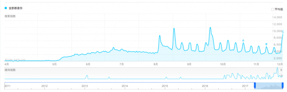 但在今年9月底开始,刘佳的百度指数突然升高,热度持续了近一个月。这得益于抖音在9月底上线的挑战#爱的手势舞#。