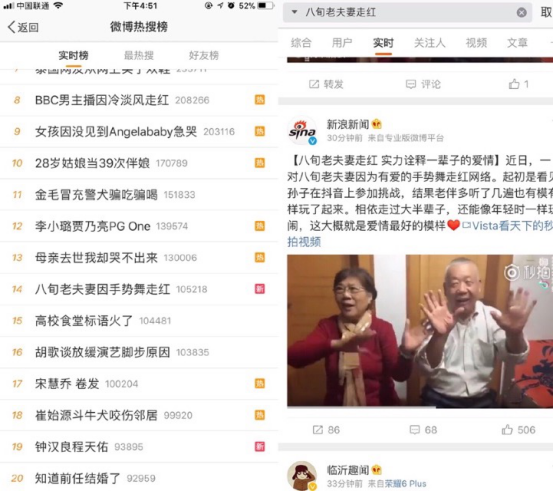 最近,一对年龄超过七十岁的老人,因为一段抖音短视频走红社交网络,登上了微博热搜。