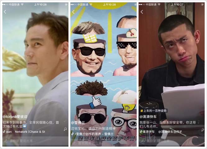 前不久,音乐短视频社区抖音上出现了雪佛兰、滴滴、爱彼迎和哈尔滨啤酒的广告。这几支广告,看上去和抖音用户发布的内容差别不大——都是配合背景音乐节奏的15秒竖屏短视频内容。