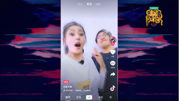 而本期节目里最高能的部分无疑是张天爱用抖音拍短视频!在本期的挑战环节现场,张天爱被要求挑选5名观众,和他们一起完成抖音短视频的拍摄。