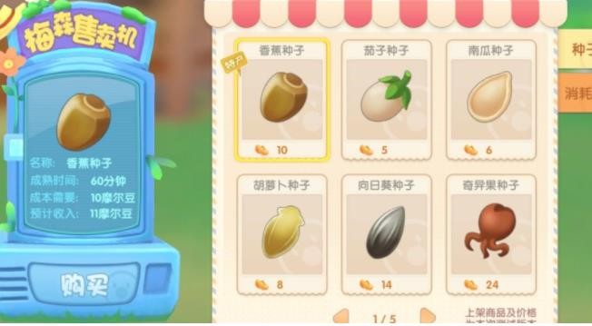 1、游戏中梅森的花园商店和种子售卖机中,玩家都可以使用200摩币进行购买。
