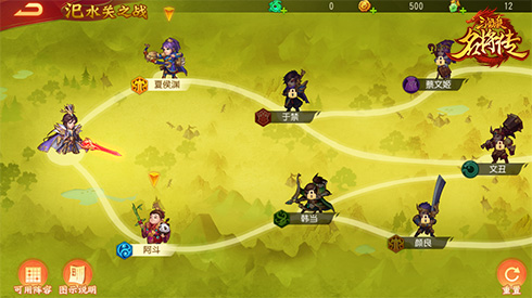 每个关卡,主公可以选择路线按照顺序挑战下一个小关卡,选择小关卡后不能后退;
